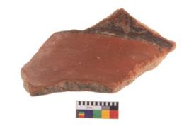 | Description / विवरण | Specimen of potsherd with traces of decorative geometric painting, Type Black on Red ware . |