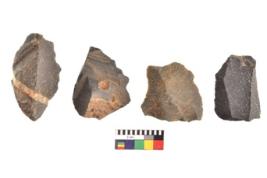 | Description / विवरण | There are n 4 utilized flake cores. There are multidirectional irregular scar pattern on both dorsal and ventral face of the flake cores. Two have flat base and two have blunted edges. |