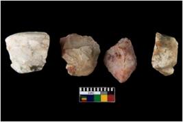 | Description / विवरण | There are n 4 of utilized worked cores.They show multidirectional irregular scar pattern. Two are tapering on one end. |
