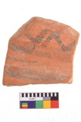 | Description / विवरण | Specimen of potsherd with traces of decorative geometric painting, Type Black on Red ware . |