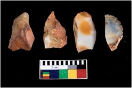 | Description / विवरण | There are n 4 of utilized worked cores. They show multidirectional irregular scar pattern. Three are tapering on one end. |