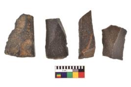 | Description / विवरण | There are n 4 utilized flake cores. There are multidirectional irregular scar pattern on both dorsal and ventral face of the flake cores. Three are tapering at one end and one has sharp edges. |