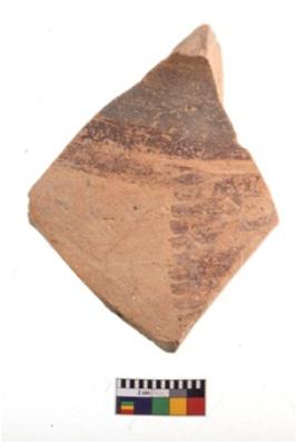 | Description / विवरण | Specimen of potsherd with decorative geometric painting. Type Black on Red Ware . |