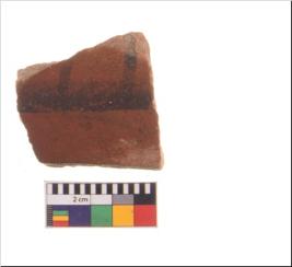 | Description / विवरण | Specimen of potsherd with decorative geometric painting, Type Black on Red ware . |