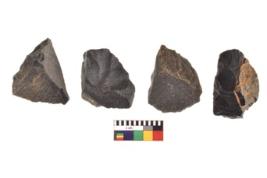 | Description / विवरण | There are n 4 utilized flake cores. There are multidirectional irregular scar pattern on both dorsal and ventral face of the flake cores. Two have blunted edges and two have round edges. |