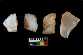 | Description / विवरण | There are n 4 of utilized worked cores. They show multidirectional irregular dominant scar pattern. One of them is tapering at one end. Two have sharp edges. |