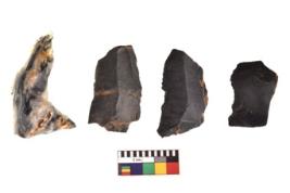 | Description / विवरण | There are n 4 utilized flake cores. There are multidirectional irregular scar pattern on both dorsal and ventral face of the flake cores. Two are tapering at one end and two have sharp edges. |
