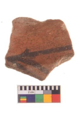 | Description / विवरण | Specimen of potsherd with decorative geometric painting, Type Black on Red ware . |