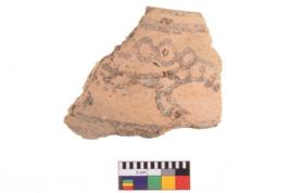 | Description / विवरण | Specimen of potsherd with decorative geometric painting, Type Black on Red ware . |