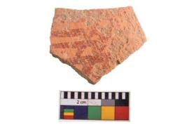 | Description / विवरण | Specimen of potsherd with decorative geometric painting. Type Black on Red Ware . |