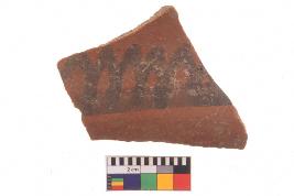 | Description / विवरण | Specimen of potsherd with black decorative painting, Type Black on Red Ware . |