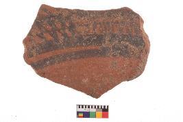 | Description / विवरण | Specimen of potsherd with black decorative geometric Set of two zigzag bands painting, Type Black on Red Ware . |
