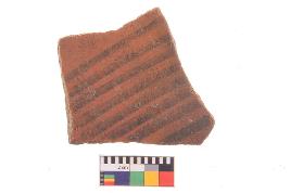 | Description / विवरण | Specimen of potsherd with black decorative geometric Linear painting, Type Black on Red Ware . |