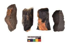 | Description / विवरण | There are n 4 utilized flake cores. There are multidirectional irregular scar pattern on both dorsal and ventral face of the flake cores. Three are tapering at one end and one has sharp edges. |
