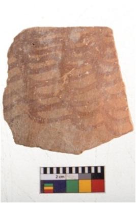 | Description / विवरण | Specimen of potsherd with decorative geometric painting. Type Black on Red Ware . |