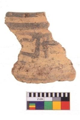 | Description / विवरण | Specimen of potsherd with decorative geometric painting, Type Black on Red ware . |