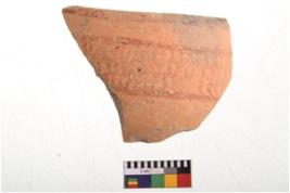 | Description / विवरण | Specimen of potsherd with decorative geometric painting. Type Black on Red Ware . |