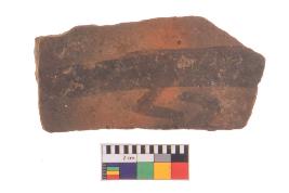 | Description / विवरण | Specimen of potsherd with black decorative painting, Type Black on Red Ware . |