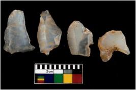 | Description / विवरण | There are n 4 of utilized worked cores. They show multidirectional irregular scar pattern and are tapering on one end. |