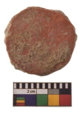 | Description / विवरण | Specimen of terracotta disc; it is irregular at the circumference and having rough surface. |