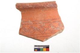 | Description / विवरण | Specimen of potsherd with decorative geometric painting. Type Black on Red Ware . |