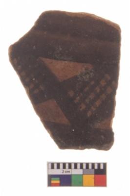 | Description / विवरण | Specimen of potsherd with decorative geometric painting, Type Black on Red ware . |