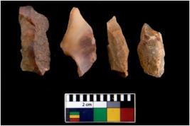 | Description / विवरण | There are n 4 of utilized worked cores. They show multidirectional irregular scar pattern and are tapering on one end with sharp edges. |