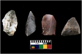 | Description / विवरण | There are n 4 of utilized worked cores.They show multidirectional irregular scar pattern. Two are tapering on one end and have flat base. |