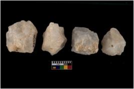 | Description / विवरण | There are n 4 of utilized worked cores. They show multidirectional irregular dominant scar pattern. Two have flat base. |