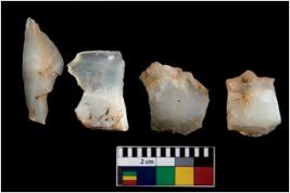 | Description / विवरण | There are n 4 of utilized worked cores. They show multidirectional irregular scar pattern. One is tapering on one end and is elongated in shape. |
