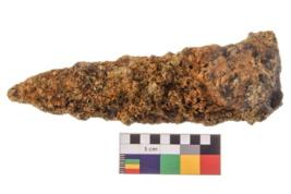 | Description / विवरण | Fragment of an iron piece; it is tapering at one end and is thickly corroded. |