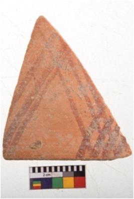 | Description / विवरण | Specimen of potsherd with decorative geometric painting. Type Black on Red Ware . |