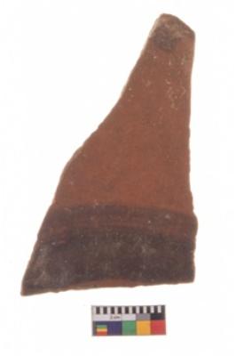 | Description / विवरण | Specimen of potsherd with traces of decorative geometric painting, Type Black on Red ware . |
