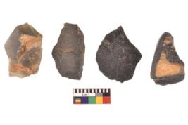 | Description / विवरण | There are n 4 utilized flake cores. There are multidirectional irregular scar pattern on both dorsal and ventral face of the flake cores. Two have flat base and two have blunted edges. |