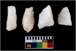 | Description / विवरण | There are n 4 flake cores. All of them are fully fluted flake cores without any trace of crested ridge flakes. Some are tapering at one end and some have flat base. |