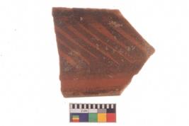 | Description / विवरण | Specimen of potsherd with decorative geometric painting, Type Black on Red ware . |