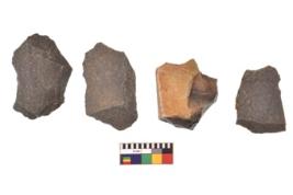 | Description / विवरण | There are n 4 utilized flake cores. There are multidirectional irregular scar pattern on both dorsal and ventral face of the flake cores. Two have blunted edges and two have round edges. |