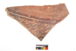 | Description / विवरण | Specimen of potsherd with decorative geometric painting. Type Black on Red Ware . |
