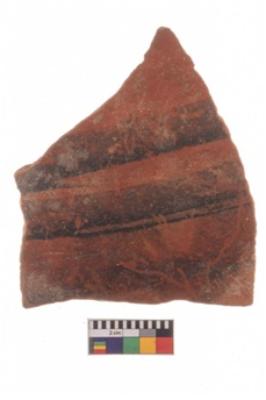 | Description / विवरण | Specimen of potsherd with decorative geometric painting, Type Black on Red ware . |