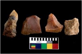 | Description / विवरण | There are n 4 of utilized worked cores. They show multidirectional irregular scar pattern. Three are tapering at one end. |