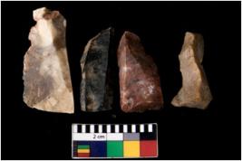 | Description / विवरण | There are n 4 of utilized worked cores. They show multidirectional irregular scar pattern and are tapering on one end. |
