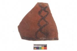 | Description / विवरण | Specimen of potsherd with decorative geometric painting, Type Black on Red ware . |