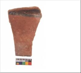 | Description / विवरण | Specimen of potsherd with traces of decorative geometric painting, Type Black on Red ware . |