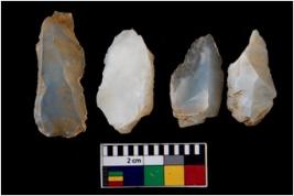 | Description / विवरण | There are n 4 of utilized worked cores. They show multidirectional irregular scar pattern and are tapering on one end. |