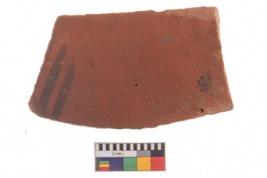 | Description / विवरण | Specimen of potsherd with traces of decorative geometric painting, Type Black on Red ware . |