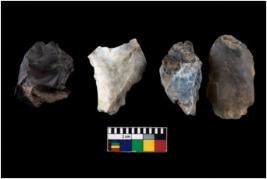 | Description / विवरण | There are n 4 of utilized worked cores. They show multidirectional irregular dominant scar pattern. One of them is tapering on one end. All have sharp edges. |
