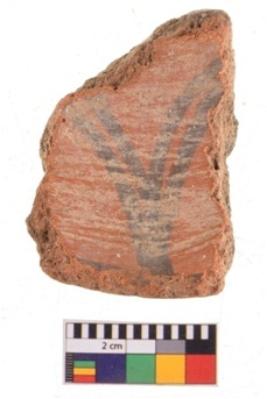 | Description / विवरण | Specimen of potsherd with traces of decorative geometric painting, Type Black on Red ware . |