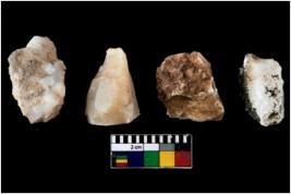 | Description / विवरण | There are n 4 of utilized worked cores.They show multidirectional irregular scar pattern. One is tapering on one end. |
