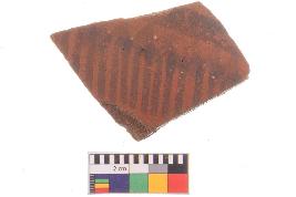 | Description / विवरण | Specimen of potsherd with black decorative geometric Linear painting, Type Black on Red Ware . |