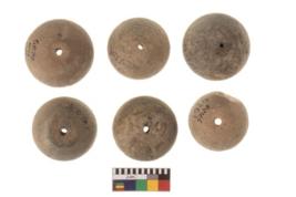 | Description / विवरण | There are n 6 areca nut shaped beads. They are creamish black in colour. All are perforated. |